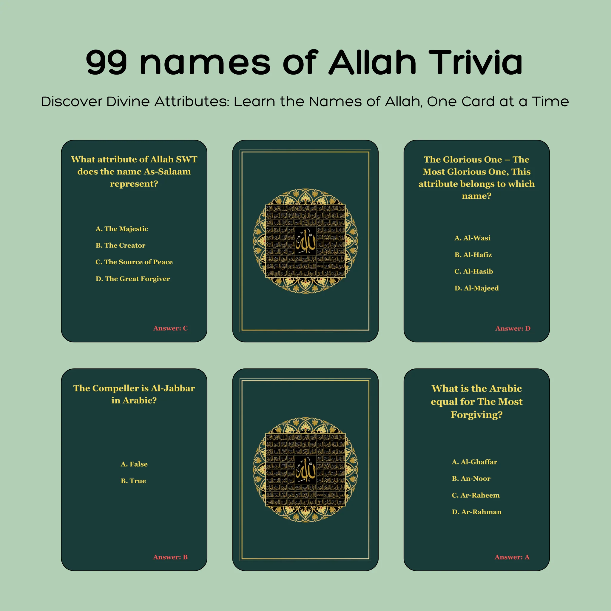 Discover the Divine with the 99 Names of Allah Islamic Trivia Card Game