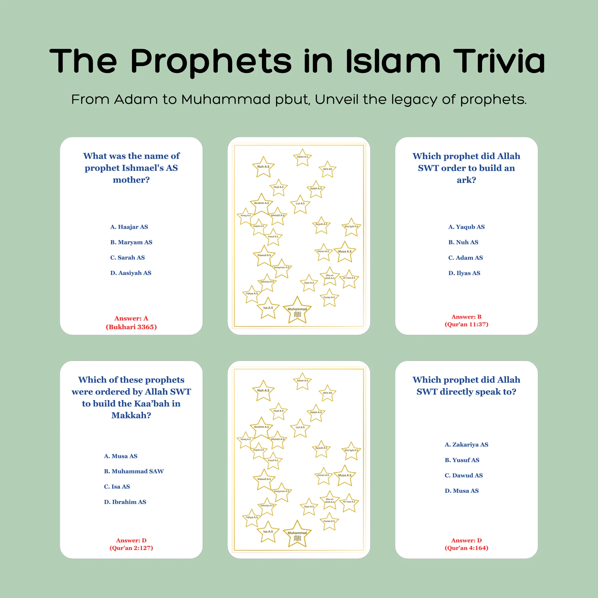 Explore the Lives of the Prophets with Our Islamic Trivia Card Game